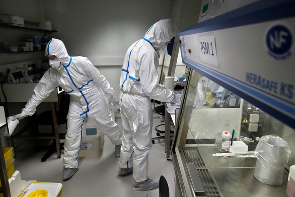 Các nhà khoa học Pháp phân tích các mẫu bệnh phẩm có khả năng nhiễm virus corona chủng mới ở Viện Pasteur, Paris vào tháng 2-2020 - Ảnh: AP