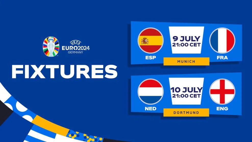 Lịch thi đấu bán kết Euro 2024: Tây Ban Nha – Pháp (2 giờ ngày 10/7); Hà Lan – Anh (2 giờ ngày 11/7).