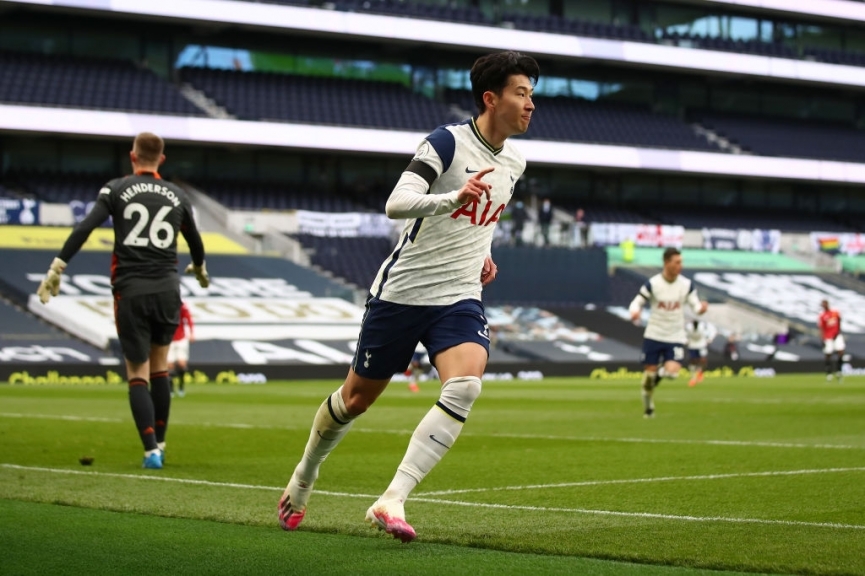 May mắn không phải nhận bàn thua mà đến phút 40, đội chủ nhà lại còn có được bàn mở tỉ số. Lindelof mắc sai lầm trong việc chặn bóng từ đường chuyền của Kane. Moura thoải mái băng xuống căng ngang để Son dứt điểm quyết đoán hạ gục Dean Henderson. 1-0 nghiêng về Spurs cũng là tỉ số cuối cùng sau 45 phút thi đấu đầu tiên.