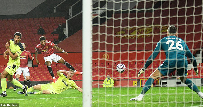 Thi đấu bế tắc, Man United phải cần đến sự tỏa sáng của các cá nhân mới có được bàn thắng, và đó chính là tiền đạo Marcus Rashford. Phút 30, tiền đạo 23 tuổi nhận bóng bên hành lang cánh trái từ đường chuyền của đội trưởng Harry Maguire. Sau hàng loạt pha xử lý kỹ thuật, Rashford đưa bóng sang chân phải rồi bất ngờ tung cú sút chìm vào góc gần làm thủ thành Darlow không kịp trở tay.