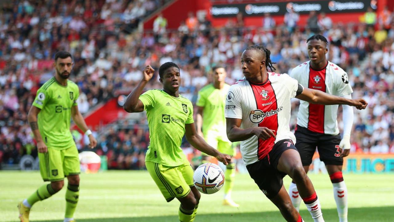 Southampton chỉ trông vào những tình huống bóng bổng, đánh thẳng vào vị trí của Lisandro Martinez, người chỉ cao 1m76 để tìm cơ hội. Từ một quả phạt góc như vậy ở phút 31, trung vệ Bella-Kotchap suýt chút nữa ghi bàn nếu pha dứt điểm ở khoảng cách 5m không bay vọt lên trời. Đây cũng là tình huống đáng chú ý cuối cùng của hiệp đấu đầu tiên.