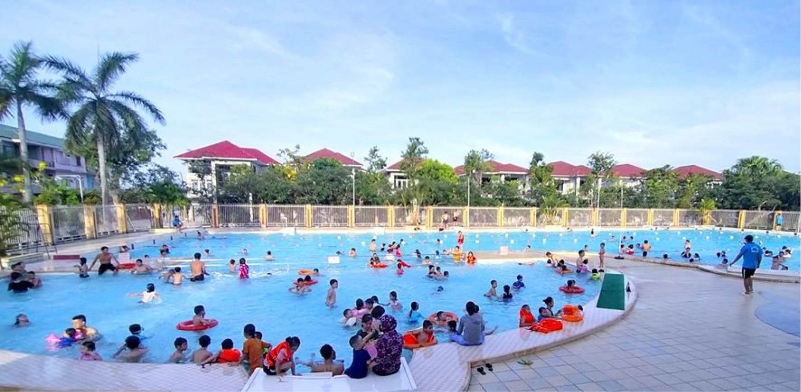 Vừa mở cửa trở lại, bể bơi ở khu An Cựu City đã chật kín khách