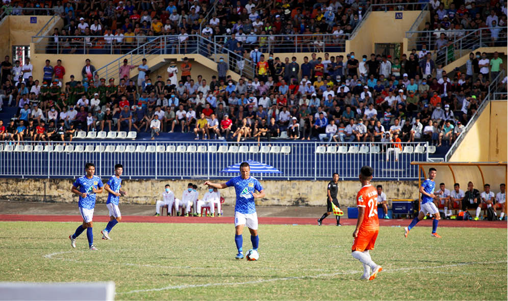 Khoảng 4.500 CĐV đến sân Tự Do cổ vũ cho CLB Bóng đá Huế (áo xanh) trong chuyến đón tiếp SHB Đà Nẵng ở vòng sơ loại Cúp Quốc gia 2020