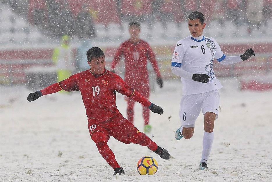 Cùng với ngôi vị á quân 2018, bóng đá U23 Việt Nam còn tự hào góp mặt ở 2 trong 5 trận đấu ấn tượng nhất giải U23 châu Á. Bên cạnh trận chung kết gặp Uzbekistan với siêu phẩm “cầu vồng tuyết” của Quang Hải, còn là trận hòa đầy kịch tính, loại đương kim vô địch U23 Iraq ở tứ kết. Trận chung kết lịch sử diễn ra giữa trời tuyết trắng Thường Châu. Quang Hải và các đồng đội kiên cường thi đấu dưới điều kiện thời tiết khắc nghiệt trong thế bị dẫn bàn trước. Để rồi, những nỗ lực không biết mệt mỏi của U23 Việt Nam được đền đáp xứng đáng, kết tinh trong siêu phẩm đá phạt đẳng cấp và giàu cảm xúc của Quang Hải.