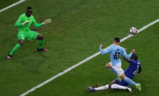 Werner sẽ hối hận rất nhiều nếu Foden tận dụng cơ hội mười mươi từ đường căng ngang của De Bruyne ở phút 27 để có thể sút bóng thành công khi đối mặt với Mendy. Tuy nhiên, may mắn cho Chelsea là Ruediger đã xuất hiện đúng lúc và đã có pha cản phá xuất thần. Sau pha bóng này không lâu, The Blues gặp tổn thất lớn ở hàng phòng ngự khi Thiago Silva chấn thương và phải nhường chỗ cho Christensen.