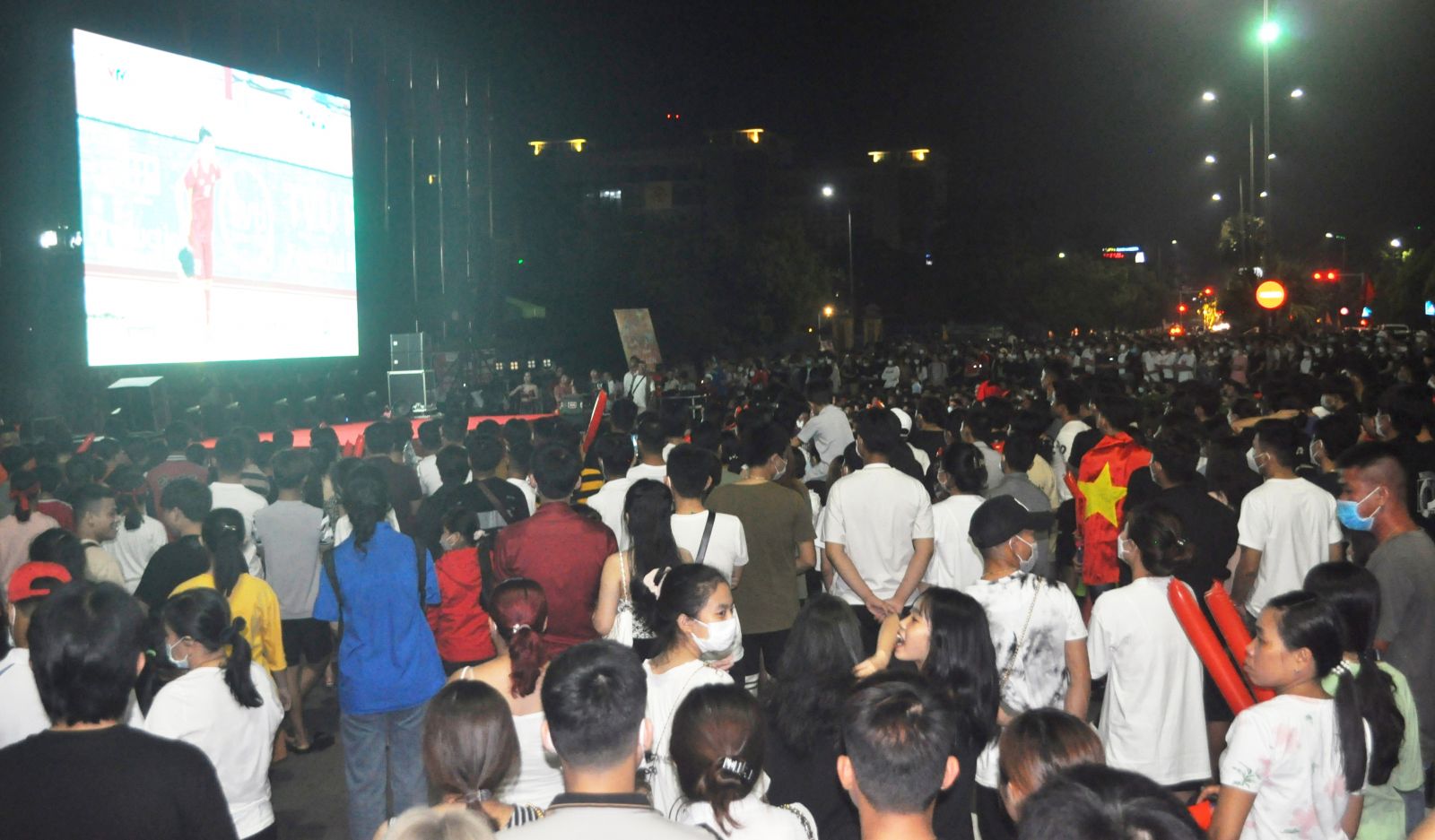 Từ chiều 22/5, khu vực trước Trung tâm Thể thao, đường Hà Huy Tập (TP. Huế), không khí đã náo nhiệt cùng với sự hối hả tấp nập của rất đông người dân tụ hội về đây để theo dõi và “tiếp lửa” cho đội tuyển U23 Việt Nam trong trận đấu chung kết.