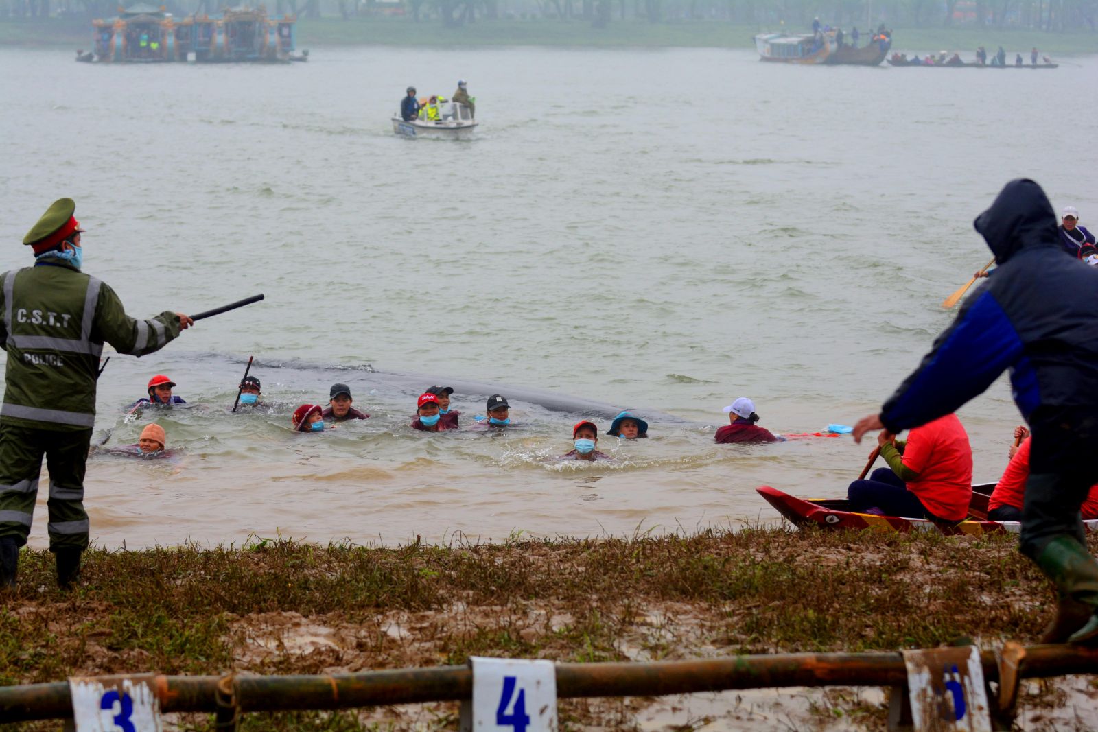 Do cạnh tranh quyết liệt, một chiếc ghe đã bị chìm khi gần về đích. Tuy nhiên, tất cả là dân sông nước nên điều này không ảnh hưởng nhiều đến các bạn bơi