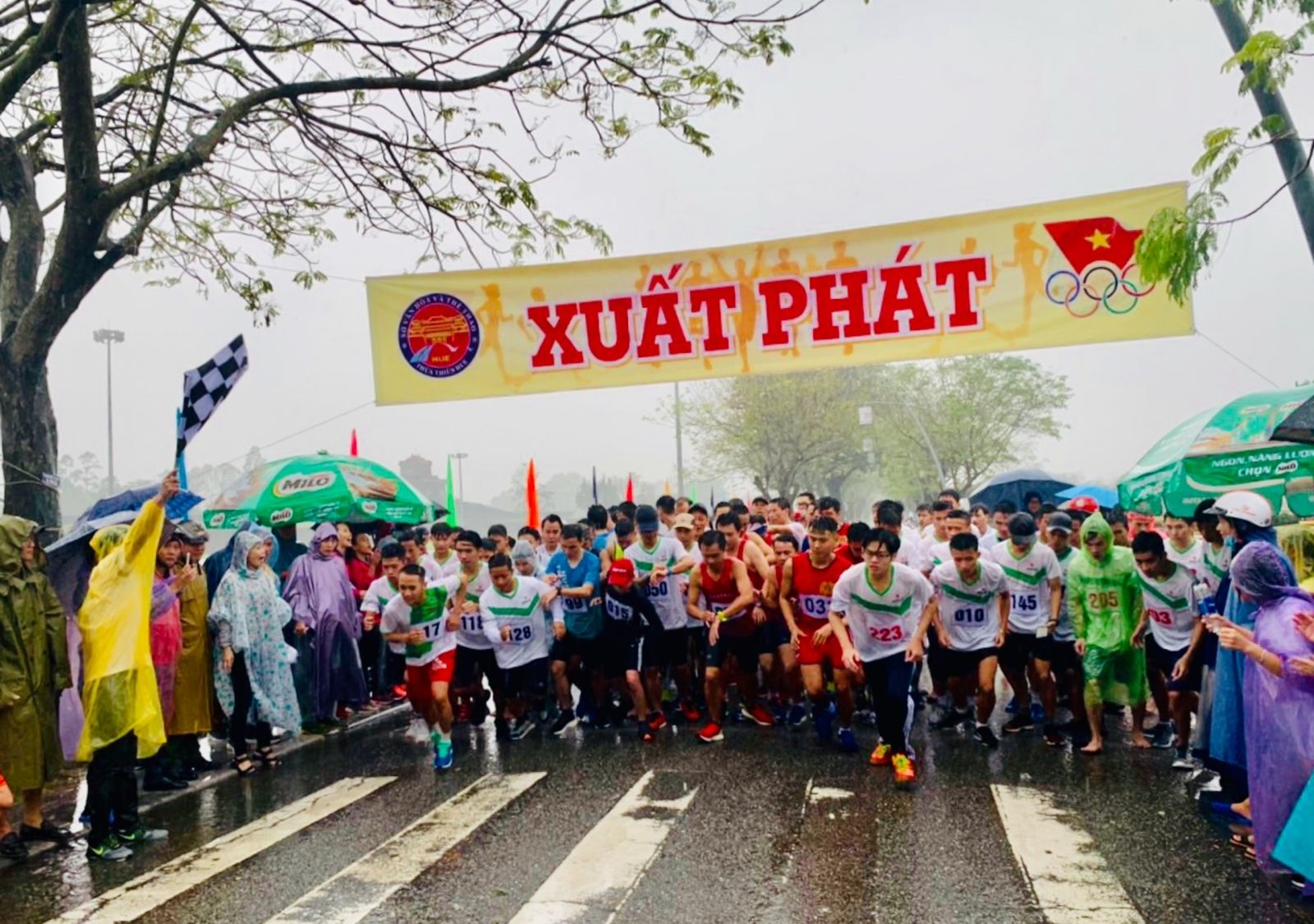 Gần 1.500 vận động viên chạy dưới mưa