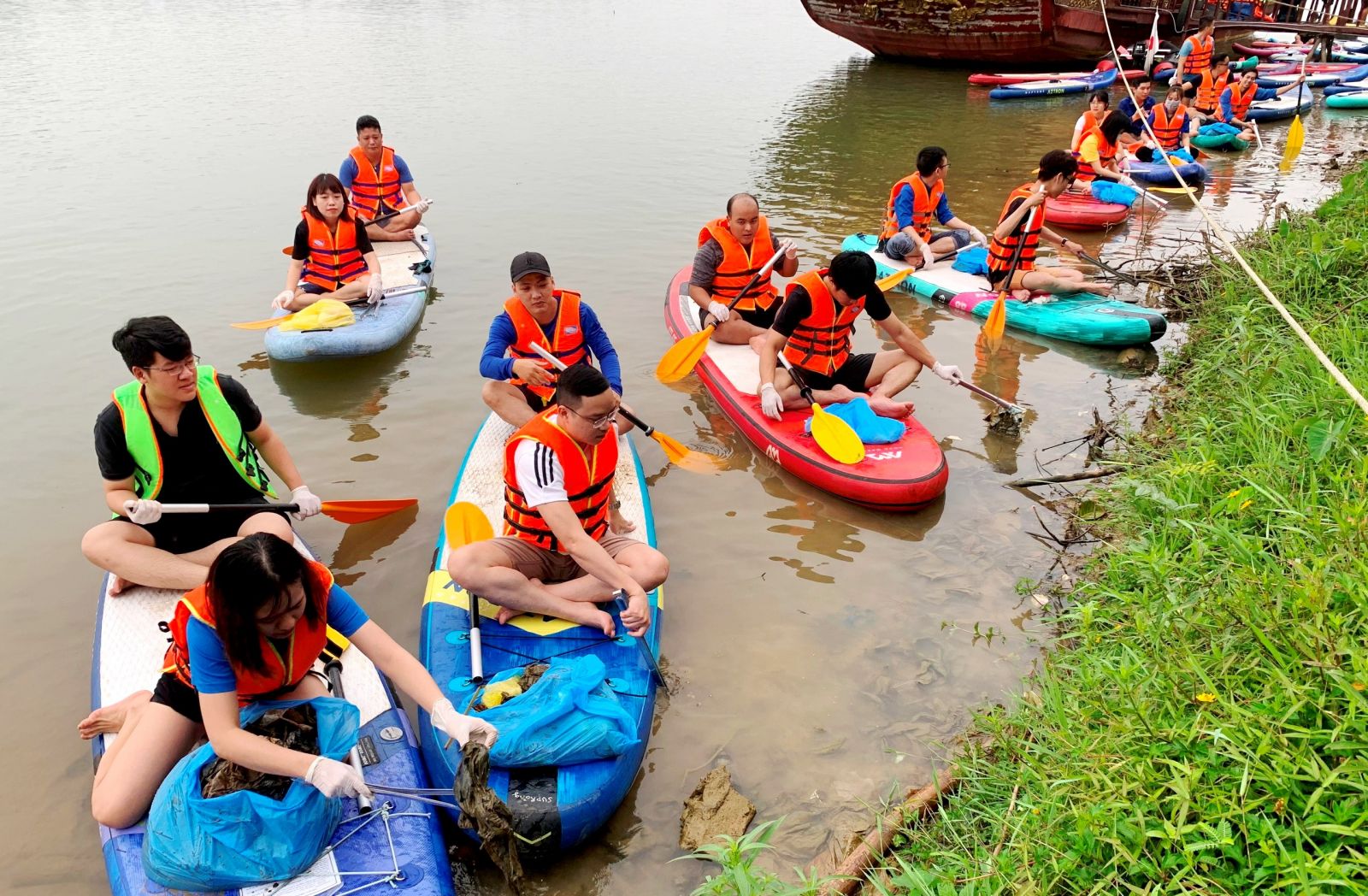 Tiếp đó là hoạt động chèo SUB và nhặt rác bảo vệ dòng Hương