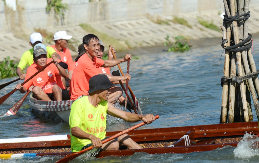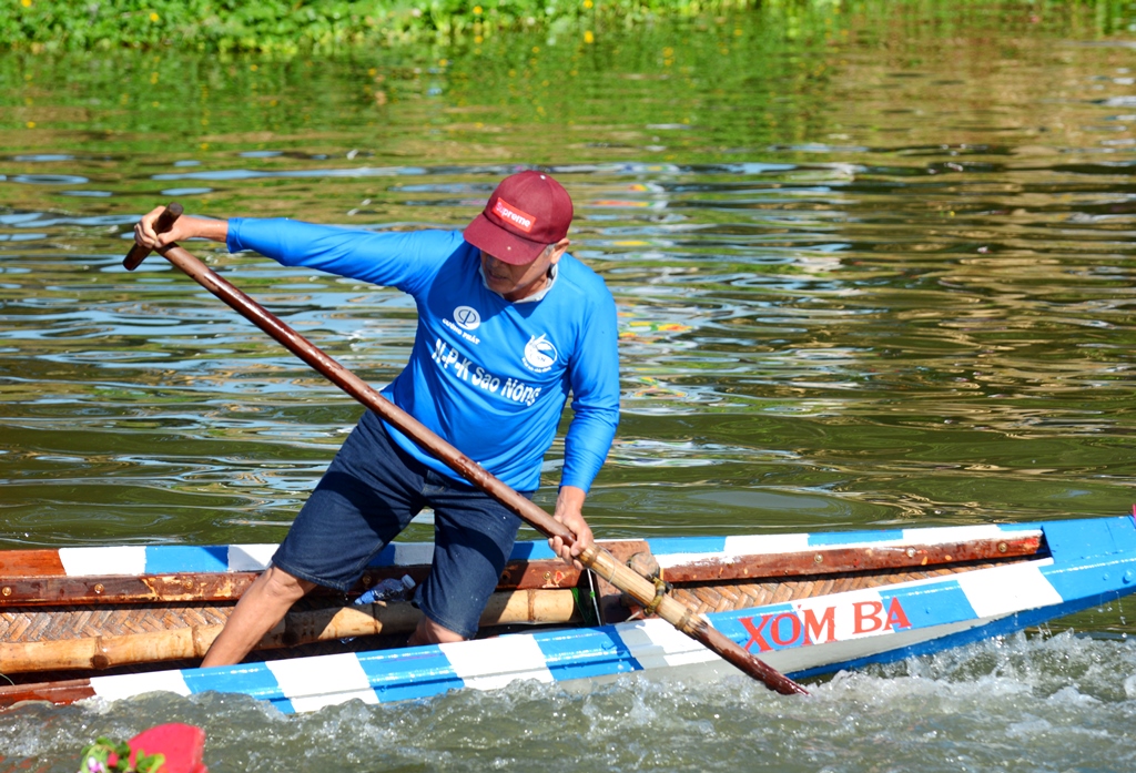 Một bạn bơi lớn tuổi nhưng sức lực và kỹ thuật cầm lái khiến nhiều ghe đối thủ phải e dè