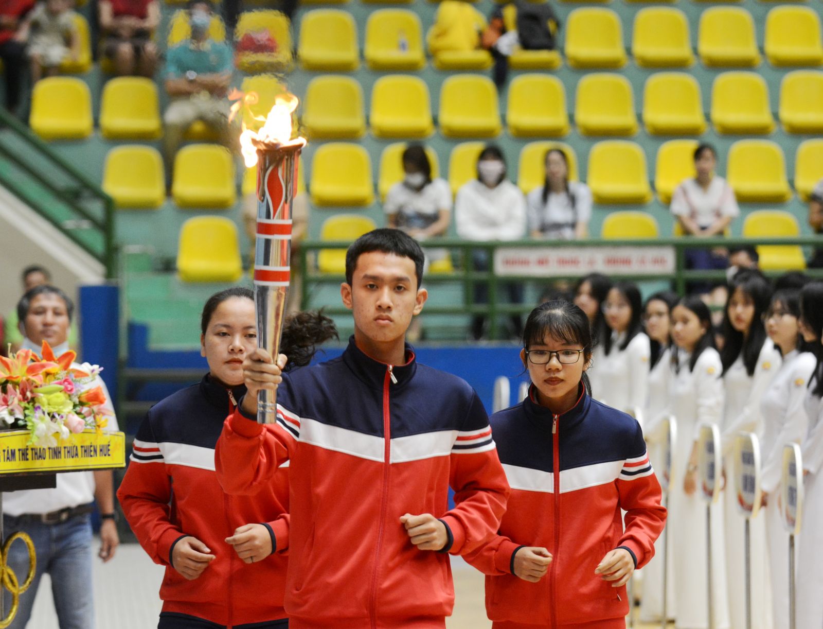 3 VĐV vinh dự rước ngọn đuốc từ Bảo tàng Hồ Chí Minh tỉnh là những gương mặt có thành tích nổi bật trong phong trào TDTT