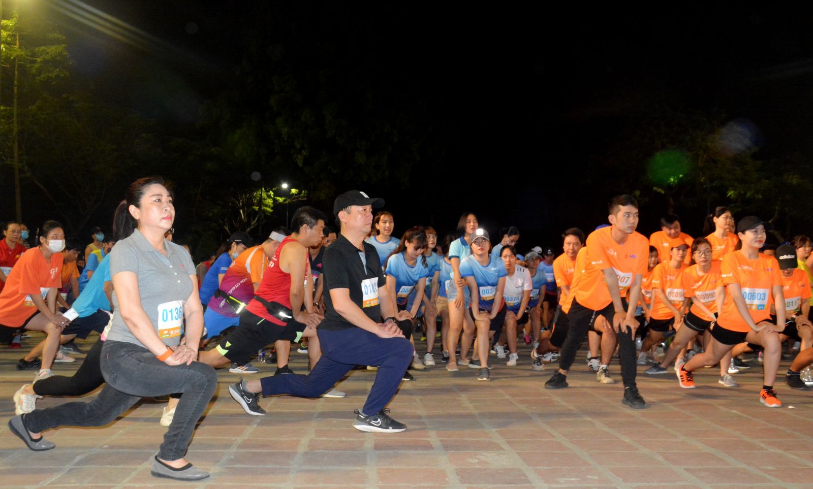 Lãnh đạo TP. Huế cùng các VĐV khởi động trước giờ xuất phát