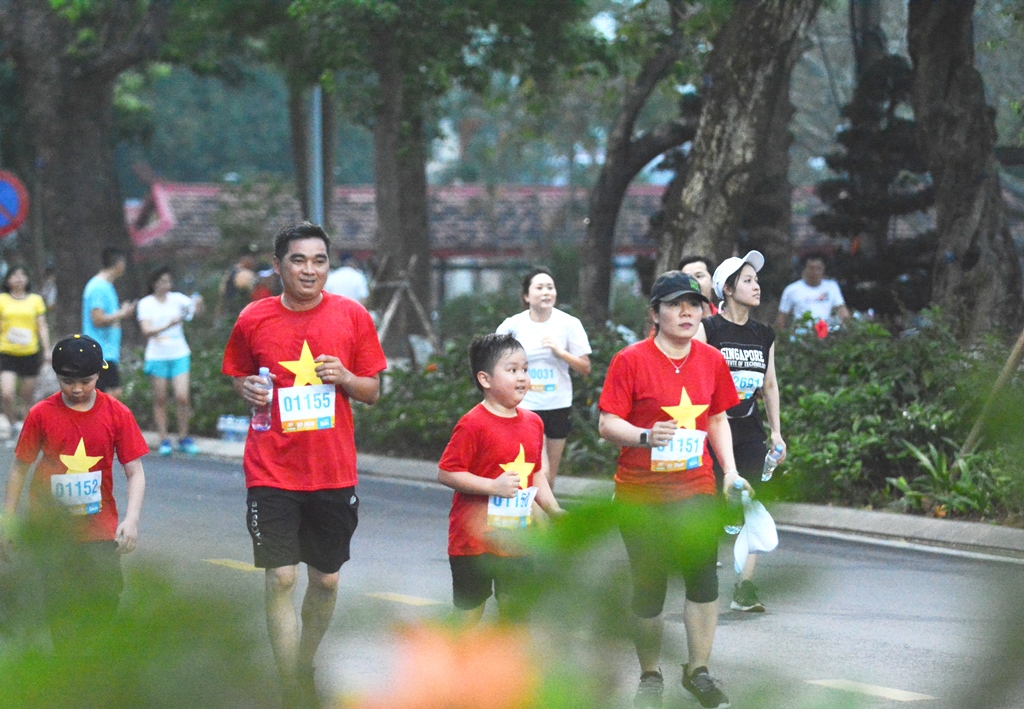 Trang phục nổi bật của một gia đình tham gia giải Hue Jogging
