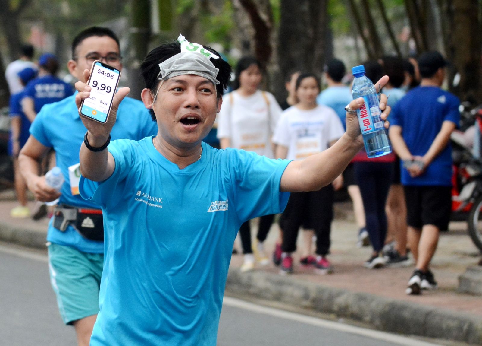Một VĐV "khoe" thông số trên đường chạy sau khi hoàn thành cự ly dài nhất tại giải lần này
