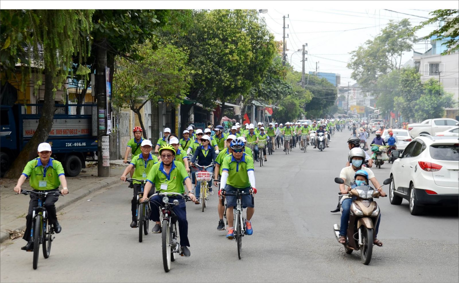Doanh nhân Huế đạp xe kêu gọi hưởng ứng "Ngày Chủ nhật xanh". Ảnh: HÀN ĐĂNG