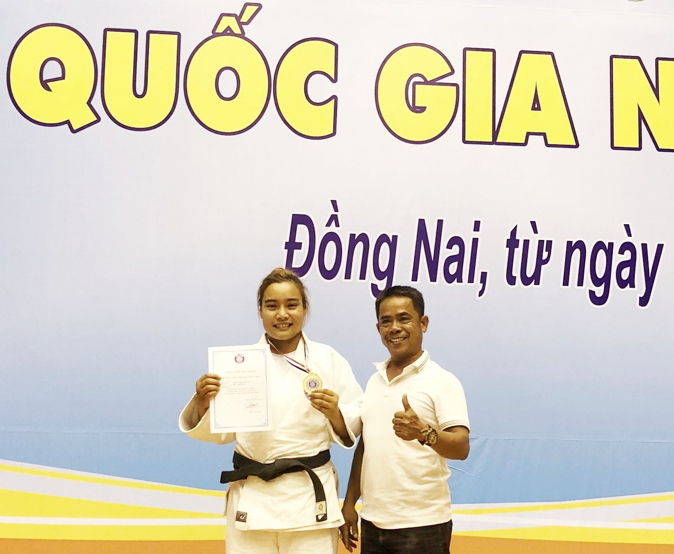 Dương Thị Quỳnh Như cùng tấm HCV tại giải. Ảnh: Nguyễn Ngãi