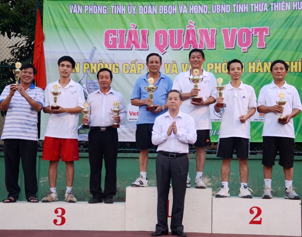 HNN.VN - Chiều 23/8, giải quần vợt truyền thống Văn phòng cấp ủy và Văn phòng hành chính các cấp lần IV-2014 đã khép lại trên sân quần vợt Công an Tp. Huế. Ông Phan Ngọc Thọ - Phó Chủ tịch UBND tĩnh đã đến dự và trao cờ, cúp cho các VĐV đạt giải.