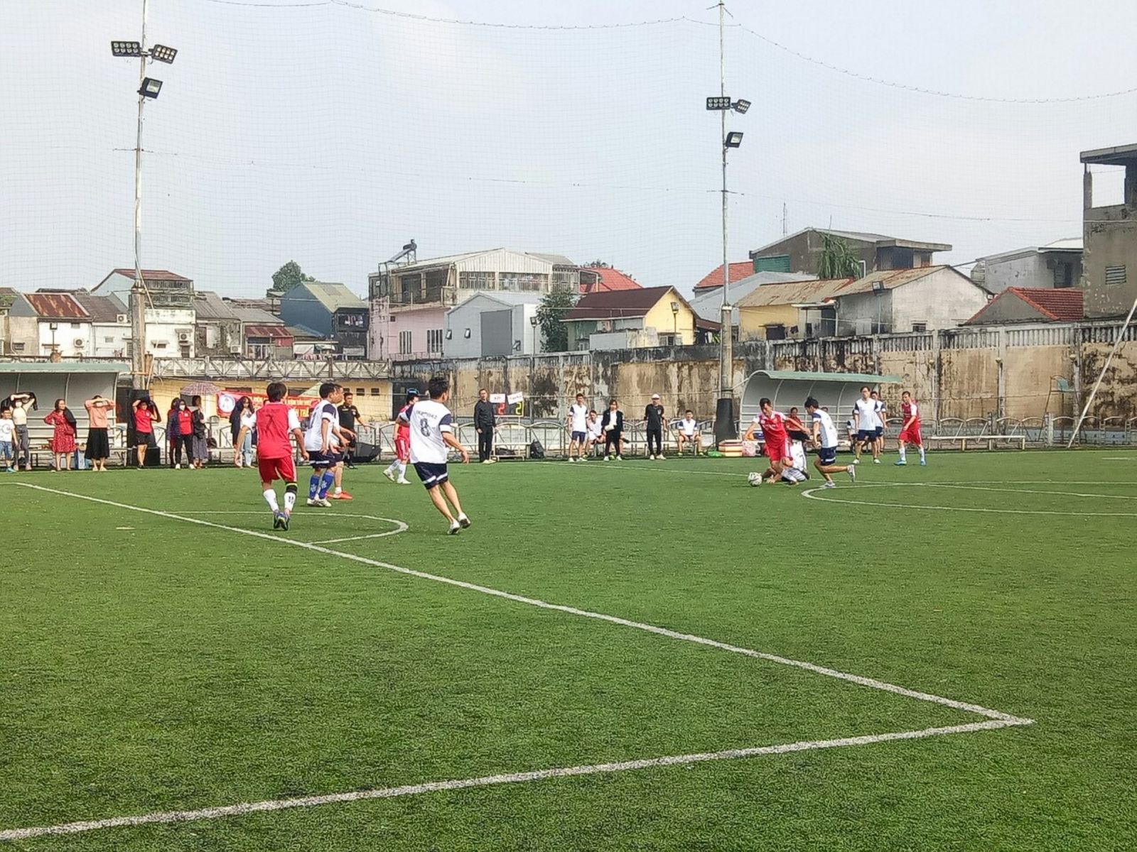 Pha tranh chấp bóng đẹp mắt của đội bóng Bệnh viện Giao thông vận tải gặp Trung tâm Y tế Phú Lộc