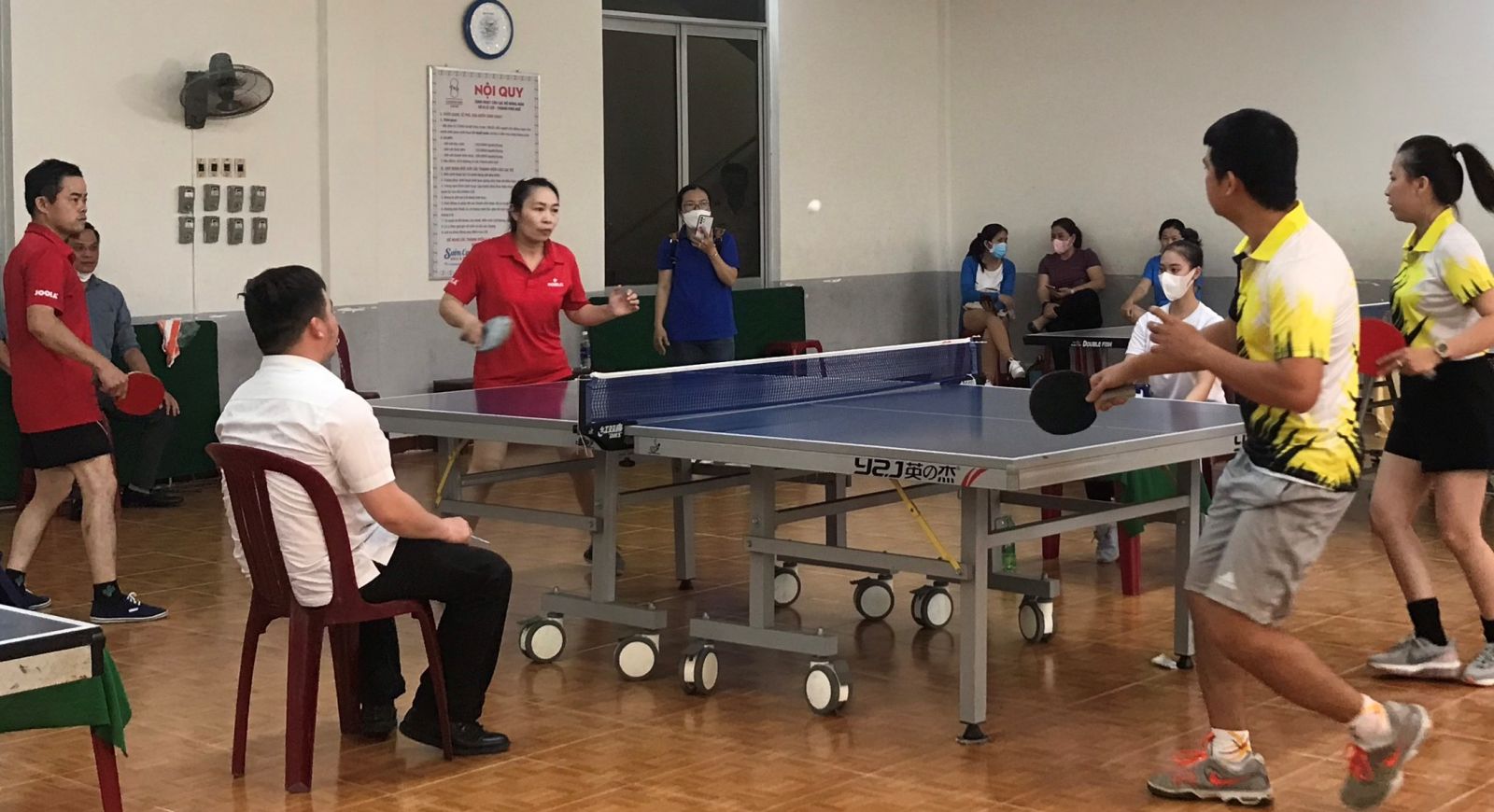 Vận động viên tranh tài môn bóng bàn ngay sau lễ khai mạc