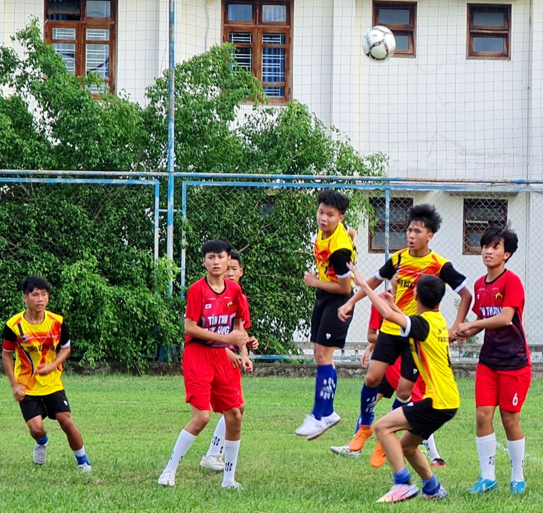 Một pha không chiến giữa cầu thủ P. Tây Lộc (áo vàng) và P. Thuận Thành