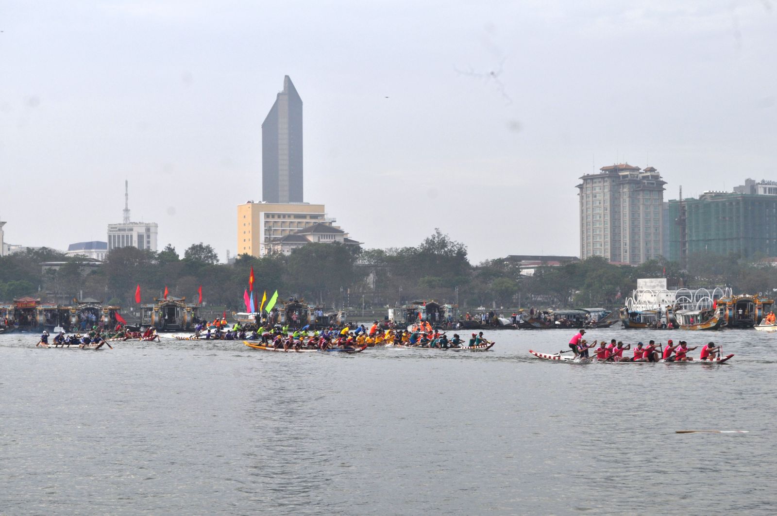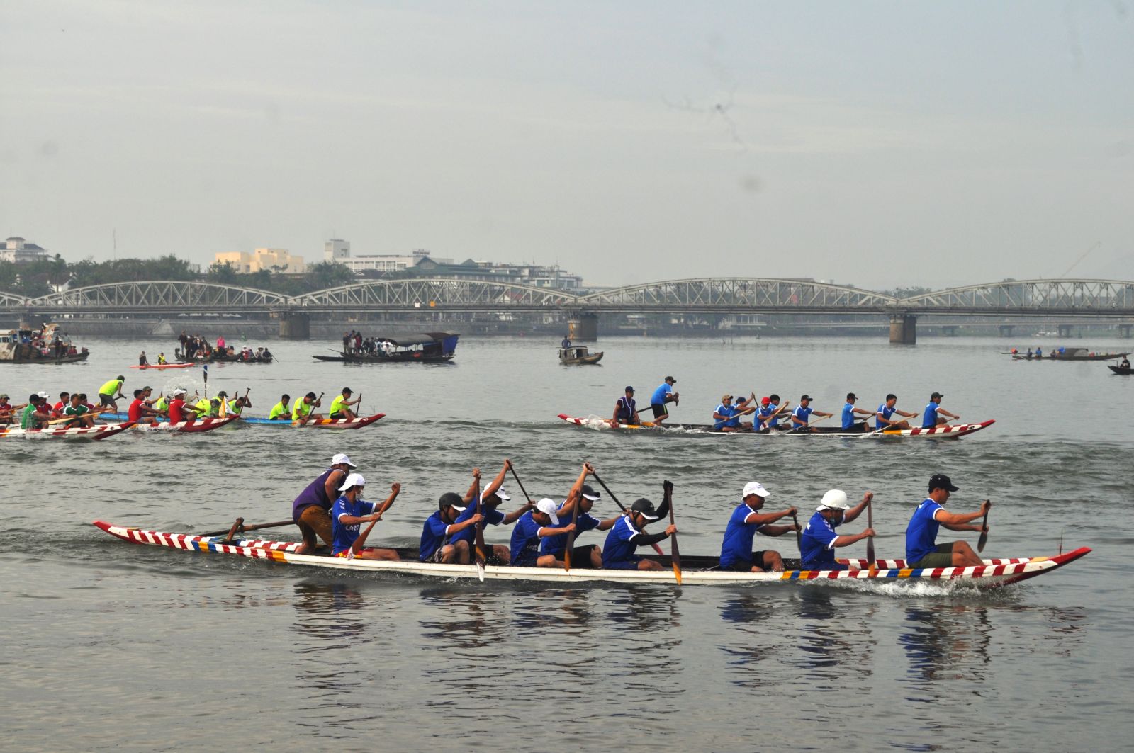 Giải đua năm nay quy tụ gần 500 VĐV nam, nữ đến từ 12 phường, xã thuộc thành phố, tham gia tranh tài 12 độ: độ cúng và độ phá, bơi 3 vòng 6 tráo; các độ tiền nam nữ bơi 2 vòng 4 tráo.