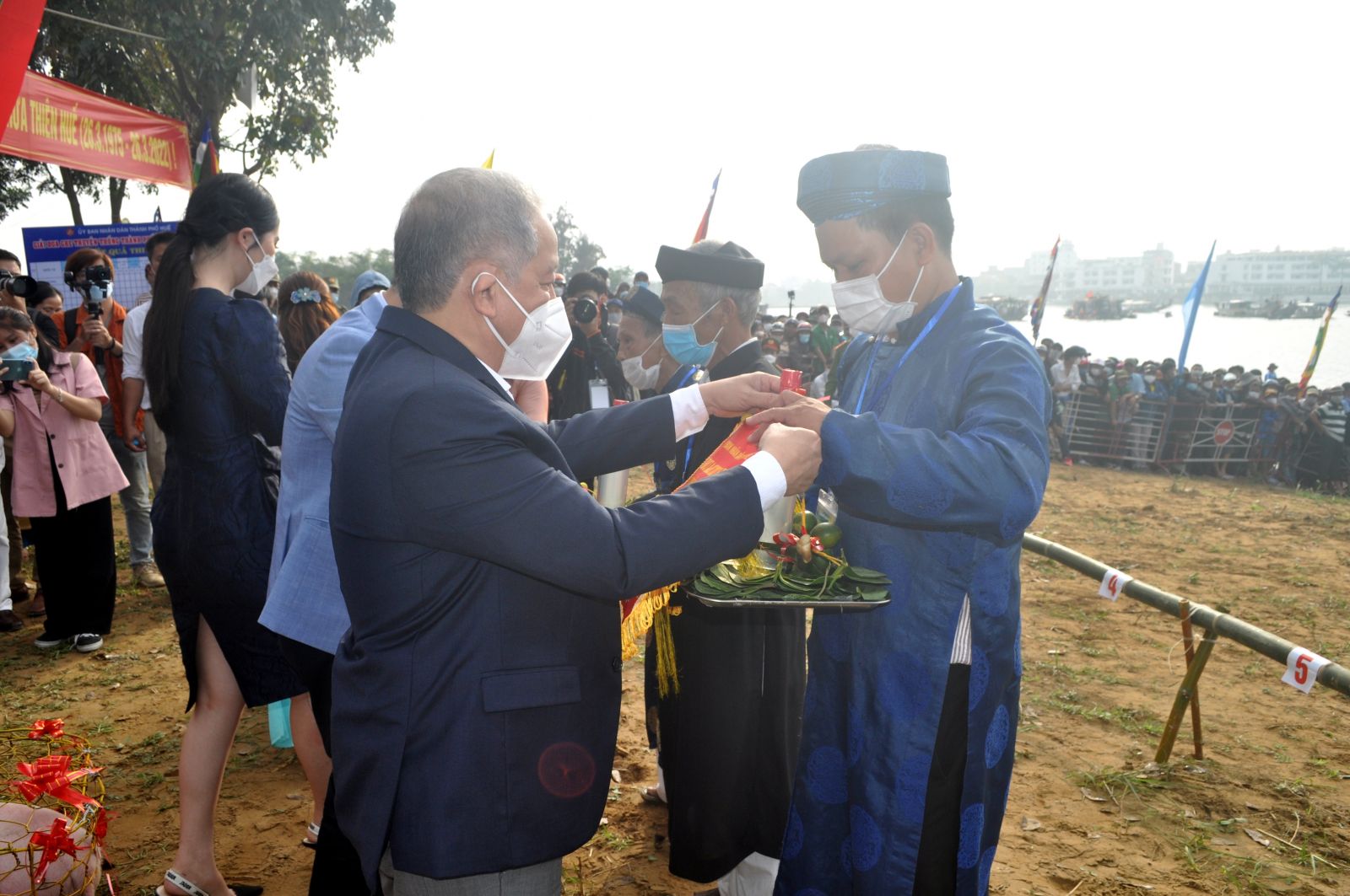 Phó Bí thư Thường trực Tỉnh ủy Phan Ngọc Thọ trao giải Nhất phần đua độ Cúng cho đội Hương Vinh