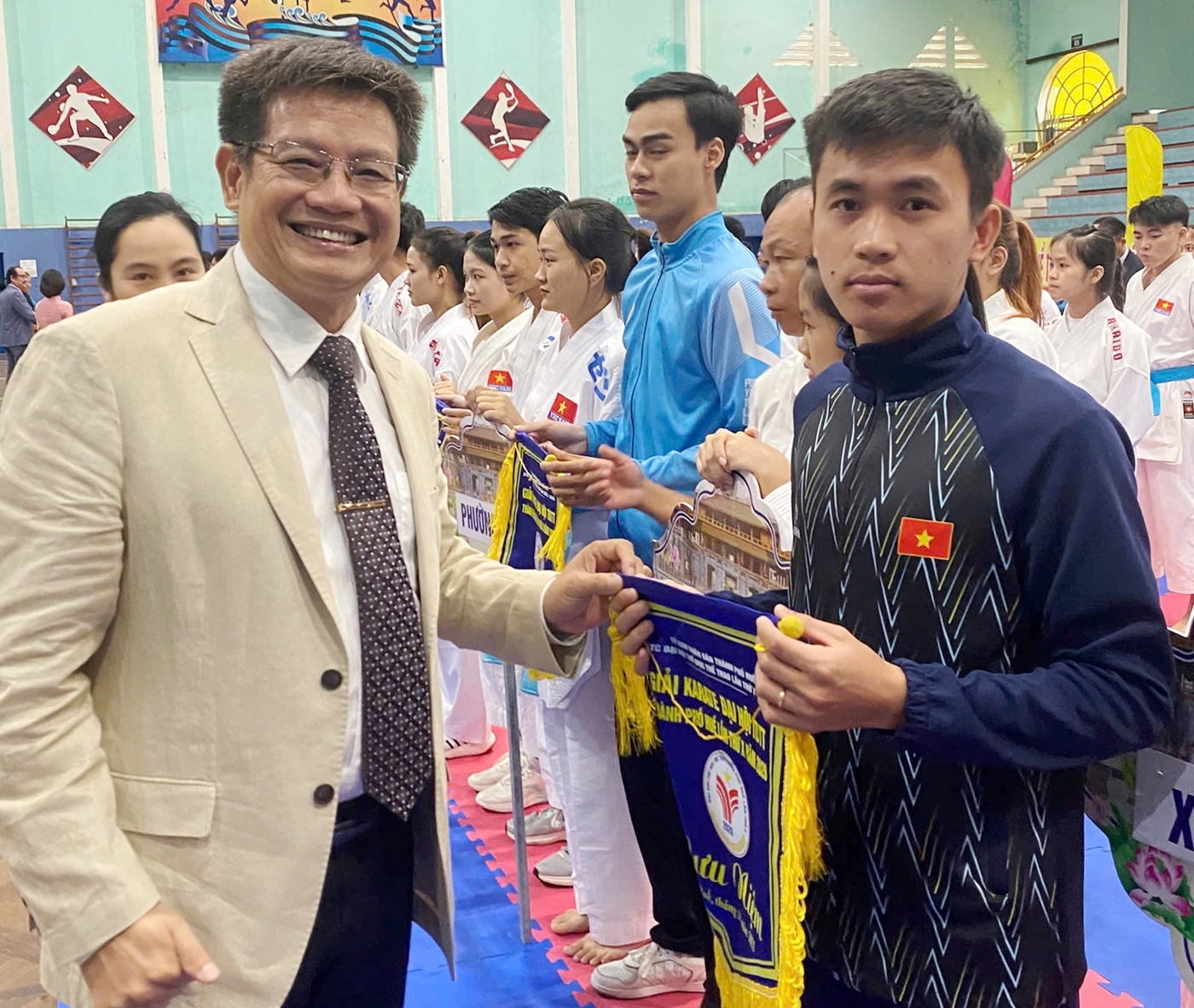 | Giám đốc Sở Văn hóa & Thể thao tặng cờ, động viên các đoàn tham dự |