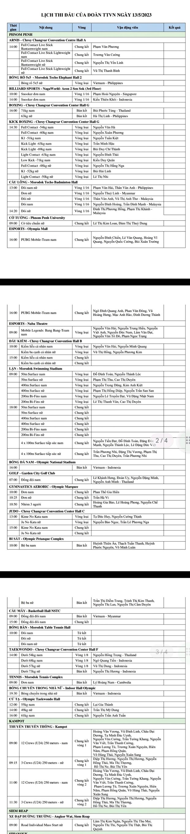 Lịch thi đấu SEA Games 32 ngày 13/5: Chờ "ngày vàng" của môn Lặn