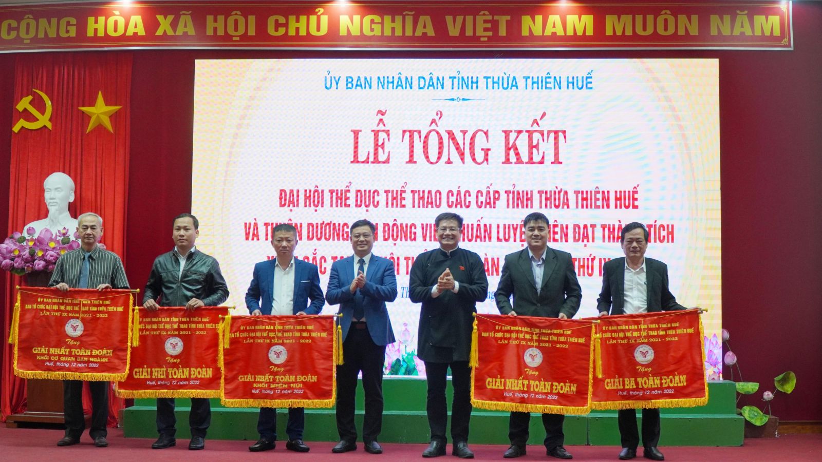 Dịp này, đã trao Bằng khen của UBND tỉnh cho các tập thể và cá nhân đã có thành tích xuất sắc trong công tác tổ chức Đại hội TDTT các cấp lần thứ IX; trao giải cho các đơn vị tại Đại hội TDTT tỉnh lần thứ IX; trao Bằng khen cho các HLV, VĐV đã có thành tích xuất sắc tại Đại hội Thể thao toàn quốc lần thứ IX năm 2022.