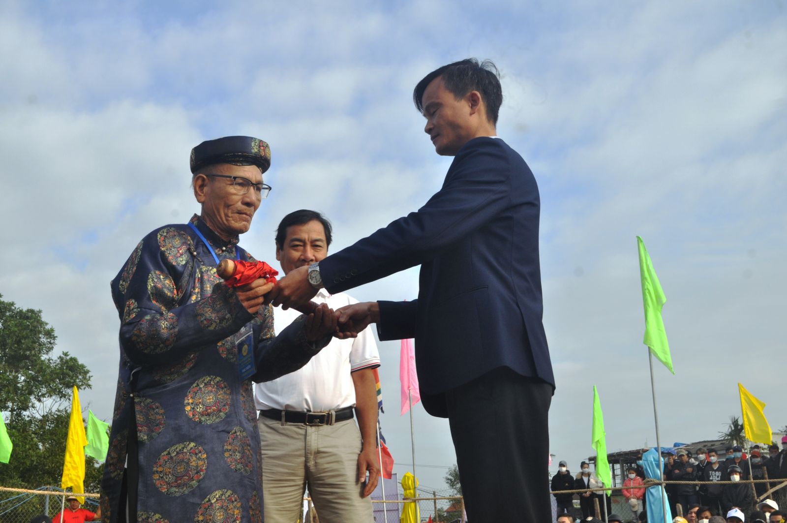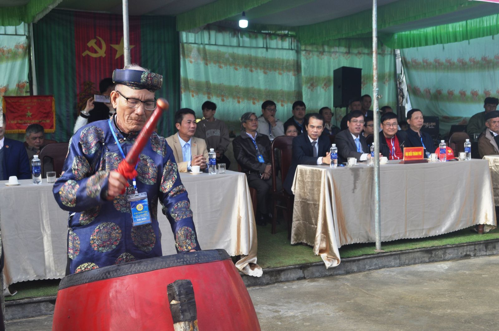 Nghi thức trao tay trống cho già làng trước lúc khai hội vật