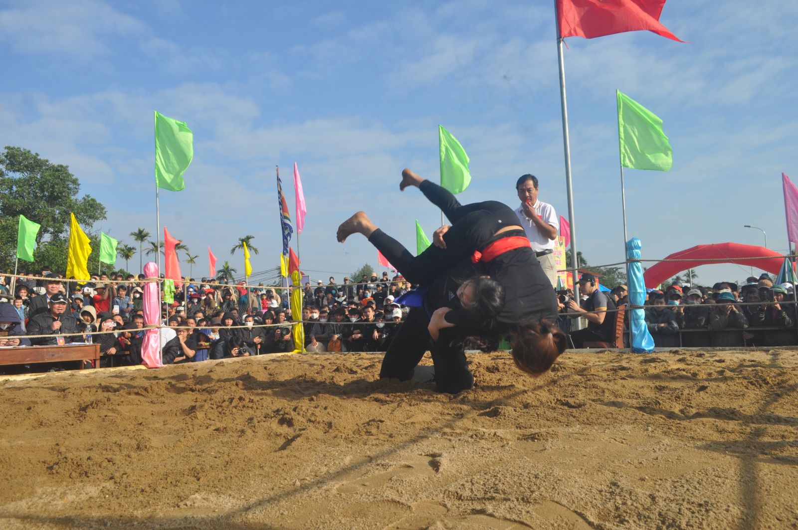 Hội vật năm nay thu hút rất đông các đô vật nam, nữ là thanh thiếu niên có sức khỏe tốt đến từ các thôn trên địa bàn xã và các vùng lân cận. Các đô vật tranh tài ở nội dung vật truyền thống, với hai giải đấu thanh niên và thiếu niên. Hội vật áp dụng nguyên tắc của luật thi đấu vật dân tộc, các đô vật phải vượt qua vòng đấu loại, giải thiếu niên các đô vật phải giành chiến thắng trước 2 đối thủ và giải thanh niên các đô vật phải giành chiến thắng 3 đối thủ mới bước vào vòng bán kết. Ở vòng bán kết, các đô vật phải vượt qua 1 đối thủ trước khi lọt vào vòng chung kết.