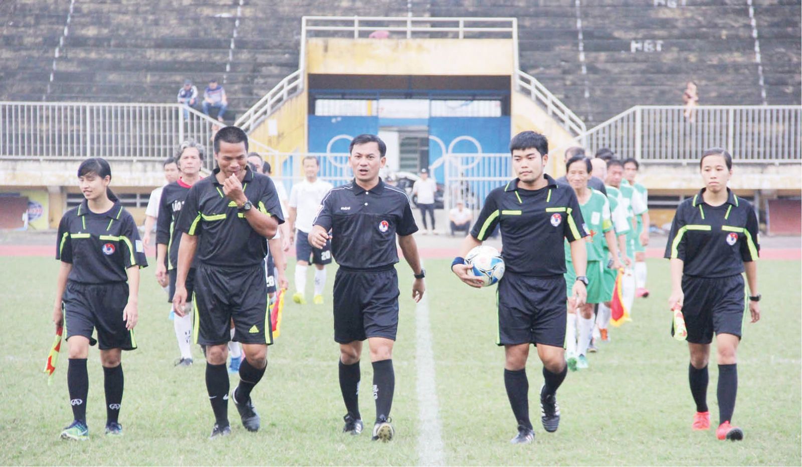 Trọng tài điều khiển một giải bóng đá phong trào ở Huế
