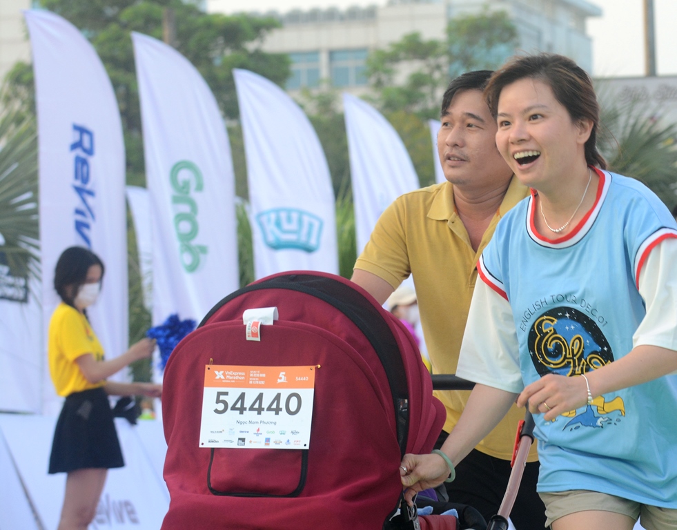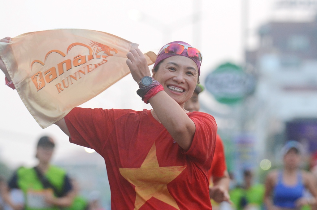 Nụ cười tươi tắn của một VĐV đứng tuổi đến từ Đà Nẵng khi ngang qua đường Lê Quý Đôn