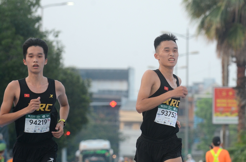 Đào Minh Thiện - Đào Minh Chí cùng về thứ 3 cự ly 42km. Đây là lần đầu tiên tại giải có sự tham dự của cặp VĐV là anh em sinh đôi