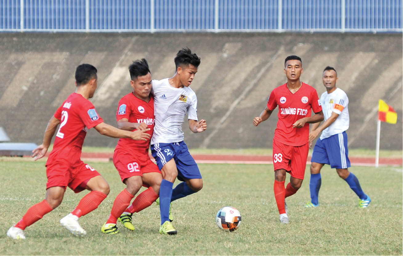 Lối chơi của Hữu Thắng (giữa) luôn khiến đối thủ phải theo kèm vất vả