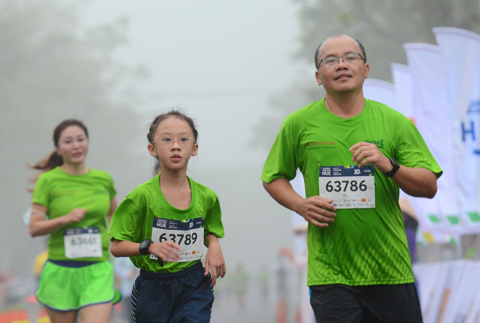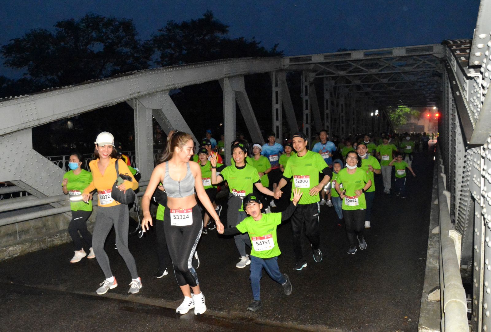 Một runner "nhí" rất phấn khích khi cùng mẹ ngang qua cây cầu nổi tiếng xứ Huế