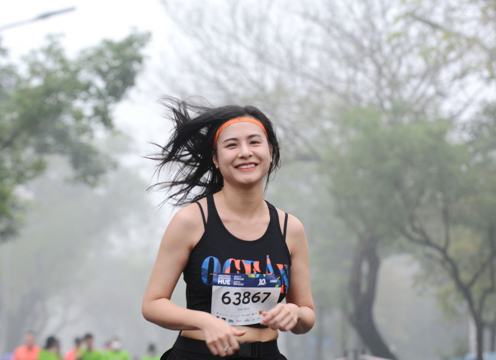 Nụ cười của một nữ VĐV xinh đẹp khi ngang qua đường Lê Lợi