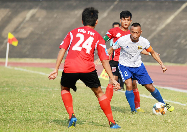 Mùa bóng này, CLB Bóng đá Huế phải chia tay Khoa Nhật (trắng) do cầu thủ này đến tuổi giải nghệ