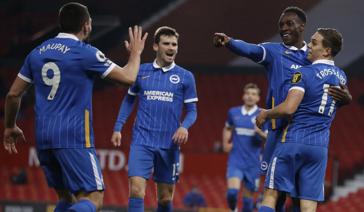 Nhưng trong khi vẫn đang loay hoay tìm đường vào khung thành của thủ môn Sanchez, Quỷ đỏ đã bất ngờ phải nhận bàn thua trước khi để thủng lưới ở phút thứ 13. Xuất phát từ đường chuyền hỏng của Paul Pogba, Brighton tổ chức phản công ngay từ giữa sân. Bóng đến chân của Maupay ở cánh phải, tiền đạo này ngay lập tức tạt bóng khó chịu vào bên trong cho Welbeck bật cao đánh đầu. Dean Henderson đã rất xuất sắc khi cản phá lần dứt điểm đầu tiên của Welbeck, tuy nhiên ở cú đá bồi sau đó, thủ thành người Anh bất lực trong việc ngăn cản người cũ của Man United điền tên mình lên bảng tỉ số.