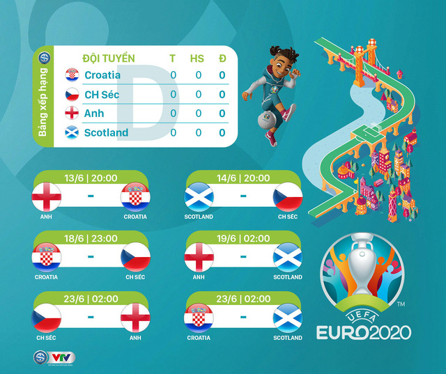 Lịch thi đấu bảng D VCK Euro 2020. Nguồn: VTV.VN