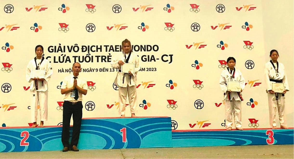 | Vận động viên Thừa Thiên Huế nhận huy chương ở Giải Vô địch Taekwondo các lứa tuổi trẻ quốc gia - CJ 2023 |