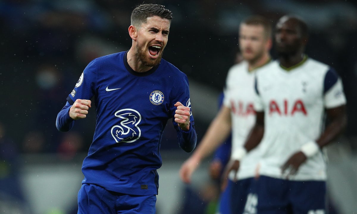 Bước ngoặt của trận đấu đến ở phút 23, khi Werner băng xuống xâm nhập vòng cấm sau đường chuyền vượt tuyến của đội trưởng Azpilicueta. Tiền đạo người Đức cố gắng xoay sở để thoát khỏi sự truy cản quyết liệt của Eric Dier và một cái ngáng chân của trung vệ bên phía Spurs đã khiến Werner ngã xuống. Ở khoảng cách quan sát quá gần, trọng tài không ngần ngại chỉ tay vào chấm 11m và Jorginho là người thực hiện quả phạt đền. Không còn là một cú đá kiểu nhảy chân sáo giống Bruno Fernandes của M.U mà thay vào đó là một cú đá quyết đoán chếch về phía bên trái. Hugo Lloris đã đổ người đúng hướng nhưng không thể ngăn cản Jorginho mở tỉ số bởi cú đá của tiền vệ người Ý là quá hiểm.