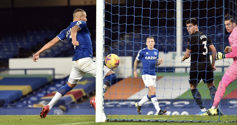 Nhưng trước sức ép quá lớn, hàng thủ của Everton đã không thể đứng vững. Phút 63, Bernardo Silva đi bóng bên cánh phải trước khi chuyền về vừa tầm cho Mahrez thực hiện cú dứt điểm cứa lòng đẹp mắt bằng chân trái hạ gục thủ môn Pickford, một lần nữa giúp đội khách vượt lên.