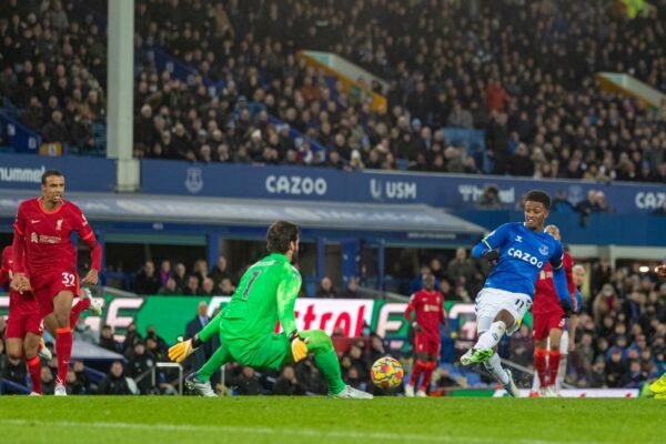 Các cầu thủ Liverpool đã sớm đẩy cao đội hình hòng tìm kiếm bàn thắng sớm ngay sau tiếng còi khai cuộc. Ở ngay phút thứ 2, trung vệ Joel Matip khiến các cổ động viên đội chủ nhà thót tim với tình huống bật cao đánh đầu đưa bóng đi sát cột dọc từ đường đá phạt góc của Alexander-Arnold. Hàng thủ Everton đã bắt đầu có dấu hiệu chuệch choạc khi không ai theo kèm Matip trong tình huống này.