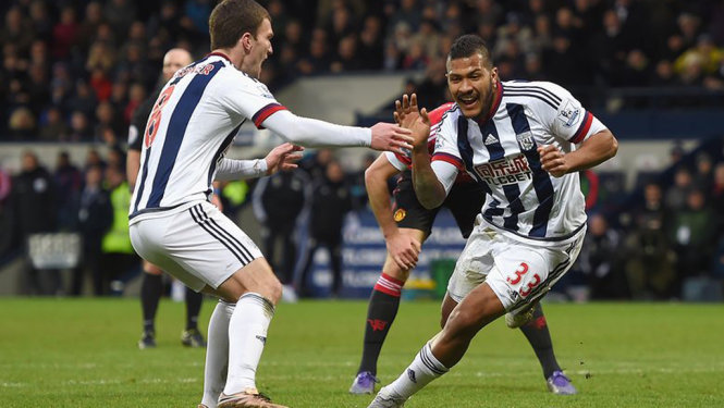 Niềm vui của Rondon (phải) sau khi ghi bàn cho West Brom. Ảnh: Getty Images