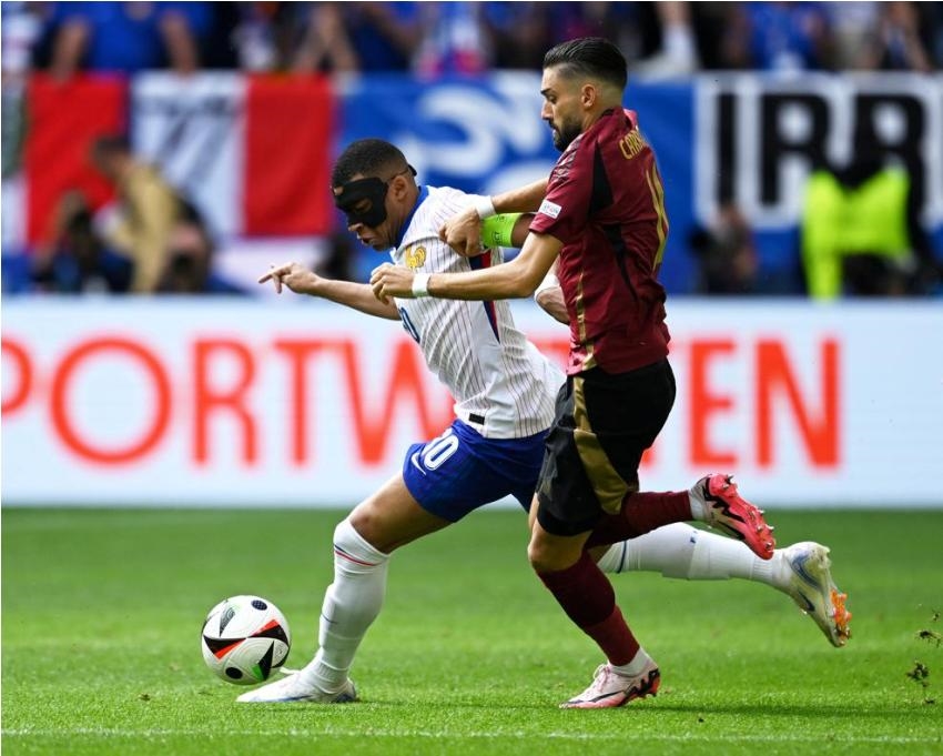 | Mbappe ( Pháp) nỗ lực đi bóng. Ảnh: UEFA |