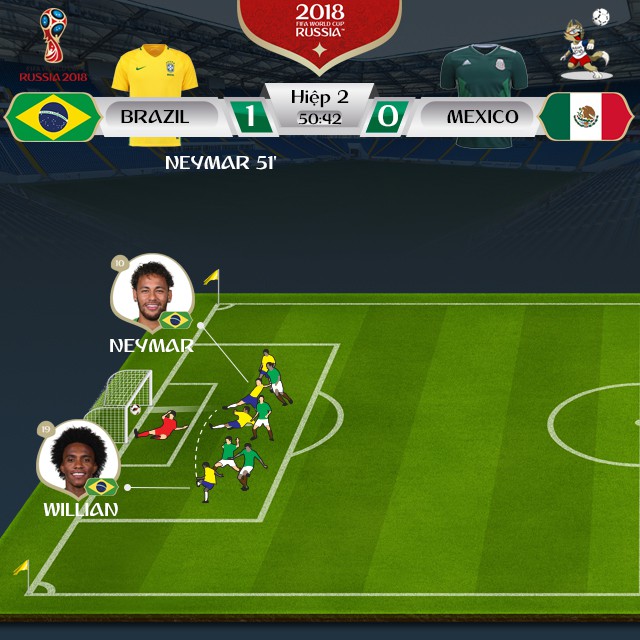 Bàn mở tỉ số của Neymar trong trận gặp Mexico