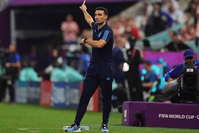 HLV Lionel Scaloni giúp tuyển Argentina và Messi vào chung kết World Cup sau 8 năm. Ảnh: AFP