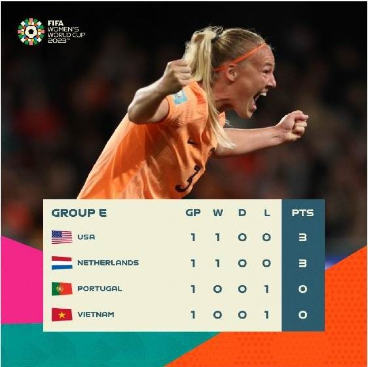 Trận đấu còn lại tại bảng E là cuộc đọ sức giữa đội tuyển nữ Hà Lan và đội tuyển nữ Bồ Đào Nha. Cũng giống như Việt Nam, Bồ Đào Nha lần đầu tiên dự World Cup nữ; trong khi đó, Hà Lan là Á quân của giải đấu.