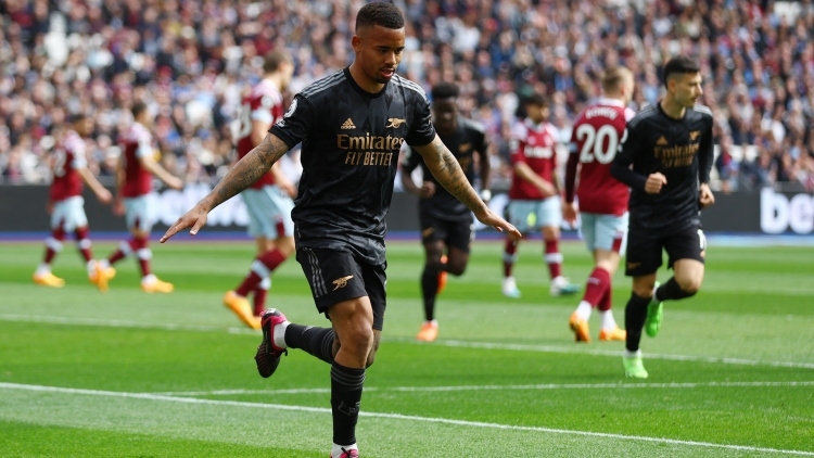 Arsenal sớm cho thấy ý đồ đánh phủ đầu khi tràn sang phần sân West Ham từ rất sớm. Ngay phút thứ 3, Martinelli có quả tạt rất tốt hướng đến cái đầu của Gabriel Magalhaes nhưng trung vệ người Brazil đã đánh đầu đi ra ngoài. Nhưng cũng chỉ 4 phút sau, đội khách đã có được bàn mở tỉ số. Odegaard chọc khe để White thoát xuống sát đường biên ngang trong vòng cấm rồi căng ngang vào trong. Jesus đã có tình huống chọn vị trí chuẩn xác để đệm bóng cận thành tung lưới Búa tạ. Một sự trở lại ấn tượng của Jesus sau chấn thương khi đây đã là bàn thắng thứ 4 trong 3 trận gần nhất.